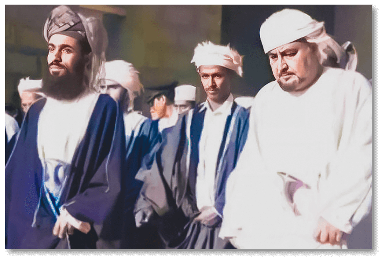 This photo was taken after the Eid Fitr prayers in Khor mosque in Muscat November of 1970. Appearing in this picture is the late majesty Sultan Qaboos bin Said and, on the left, appears the late His Royal Highness Sayyid Tariq Bin Taimur who was prime minister at the time and in the back appears Sheikh Abdul Aziz Al Rowas.